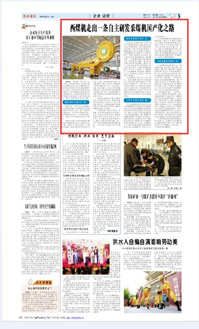 勞動者報:西煤機走出一條自主研發(fā)采煤機國產化之路