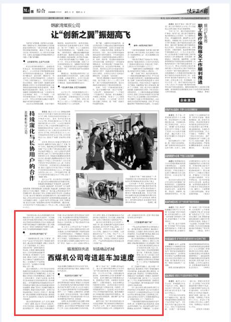 “國內(nèi)首臺套8米大采高采煤機在西煤機成功下線,達國際先進水平。”從加強對外合作到技術(shù)消化吸收,從加大關(guān)鍵技術(shù)攻關(guān)到技術(shù)成果轉(zhuǎn)化應(yīng)用,從高端大部件替代到實施國產(chǎn)化整機替代工程,西煤機走出一條進口采煤機國產(chǎn)化替代之路,實現(xiàn)了企業(yè)發(fā)展彎道超車加速度。