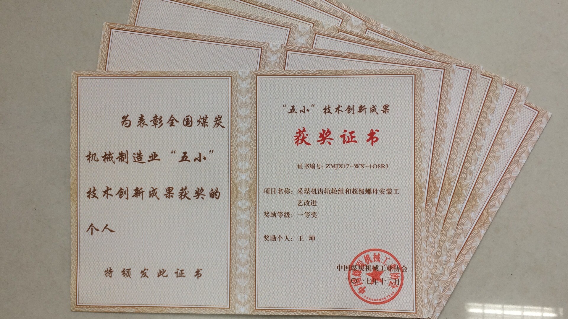 公司兩項(xiàng)目獲全國煤炭機(jī)械制造業(yè)“五小”成果獎