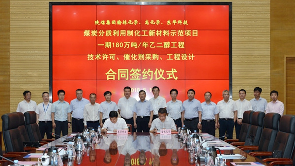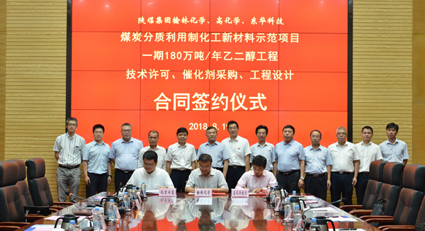 8月19日,陜煤集團(tuán)榆林化學(xué)有限責(zé)任公司煤炭分質(zhì)利用制化工新材料示范項(xiàng)目一期180萬噸/年乙二醇工程草酸二甲酯及乙二醇裝置技術(shù)許可、催化劑采購、工程設(shè)計(jì)合同簽約儀式在合肥舉行。
