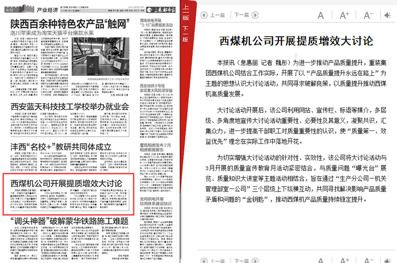 三秦都市報(bào):西煤機(jī)公司開展提質(zhì)增效大討論
