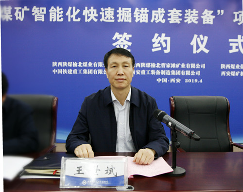 李德鎖代表西安重裝集團(tuán),對(duì)參加簽約儀式的各位領(lǐng)導(dǎo)和來(lái)賓表示熱烈的歡迎,對(duì)多年來(lái)一直關(guān)心、支持重裝集團(tuán)發(fā)展的各位領(lǐng)導(dǎo)表示感謝。他指出,“煤礦智能化快速掘錨成套裝備”項(xiàng)目聯(lián)合開(kāi)發(fā)合作協(xié)議簽約儀式,是集研發(fā)設(shè)計(jì)、生產(chǎn)制造、現(xiàn)場(chǎng)應(yīng)用為一體,有效破解煤礦快速掘進(jìn)難題的誓師大會(huì)。也是匯聚各方智慧,凝聚多方力量,圍繞煤礦快速采掘市場(chǎng)的緊迫需求,依托陜煤集團(tuán)提供的平臺(tái),探索煤礦復(fù)雜地質(zhì)條件下快速掘進(jìn)的新工藝,打造高產(chǎn)高效礦井快速掘錨成套裝備示范應(yīng)用項(xiàng)目。他表示,在陜煤集團(tuán)的堅(jiān)強(qiáng)領(lǐng)導(dǎo)下,在各合作方真誠(chéng)、積極的努力下,重裝集團(tuán)一定能夠在解決煤礦快速掘進(jìn)難題的道路上取得實(shí)質(zhì)性突破。
