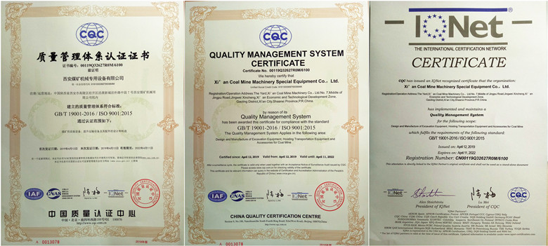 近日,煤專公司通過中國質(zhì)量認(rèn)證中心(CQC)頒發(fā)的ISO質(zhì)量管理體系認(rèn)證,并獲證書。具體認(rèn)證范圍為:煤礦用采掘設(shè)備、提升運(yùn)輸設(shè)備及其配件的設(shè)計(jì)和制造。