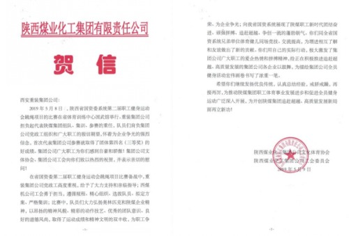 喜訊傳來(lái),陜煤集團(tuán)公司文體協(xié)會(huì)、陜煤集團(tuán)公司工會(huì)以及重裝集團(tuán)工會(huì)先后發(fā)來(lái)賀信和慰問(wèn),對(duì)公司運(yùn)動(dòng)健兒們?cè)诒荣愔械念B強(qiáng)拼搏精神予以肯定和表?yè)P(yáng),對(duì)比賽取得的好成績(jī)表示祝賀。