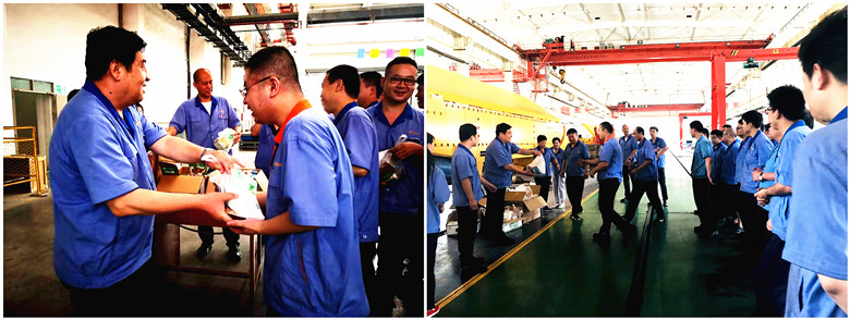 5月底,氣溫突升至38°,在從事高溫作業(yè)的熱加工、金結等分公司,隨著電熱爐及電焊的高溫加熱,車間內溫度早已超出40°以上,為了確保大干二季度各項生產任務順利完成,當室溫高達37°以上時,工會提前為這幾家分會員工送去了綠豆、白糖等防暑降溫品。