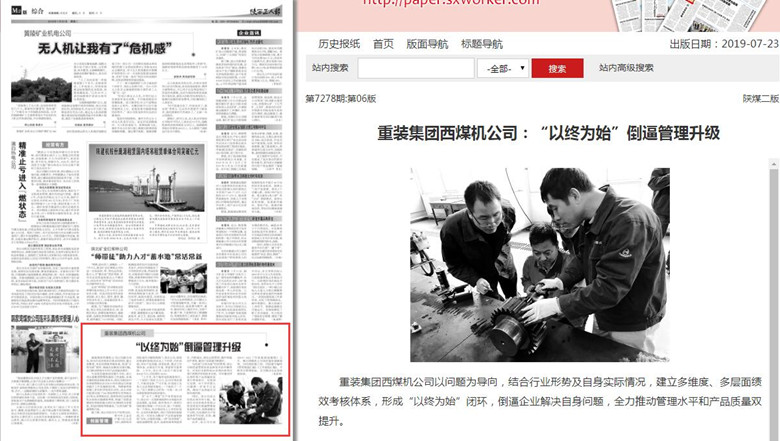 陜西工人報:重裝集團西煤機公司:“以終為始”倒逼管理升級