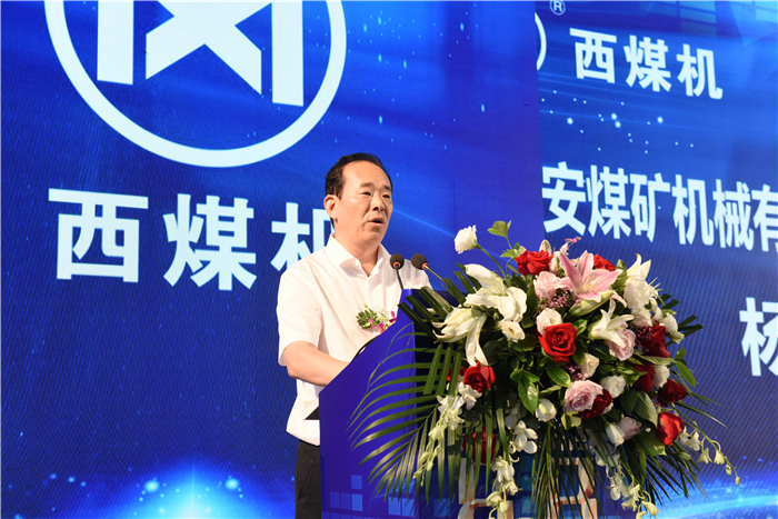中國煤炭工業(yè)協(xié)會(huì)副會(huì)長劉峰首先代表中國煤炭工業(yè)協(xié)會(huì),對我公司研制的8.8米超大采高智能化采煤機(jī)通過出廠評議并正式發(fā)布表示熱烈的祝賀!他高度評價(jià)了西煤機(jī)在我國采煤機(jī)發(fā)展歷史上所取得的成績和做出的重要貢獻(xiàn),特別對此次自主研制的8.8米超大采高智能化采煤機(jī)給予了充分的肯定。