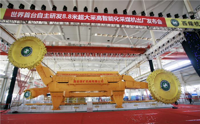 公司推出世界首臺自主研發(fā)8.8米超大采高智能化采煤機(jī)
