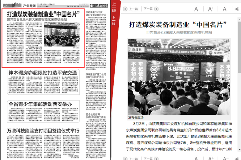 三秦都市報:打造煤炭裝備制造業(yè)“中國名片”