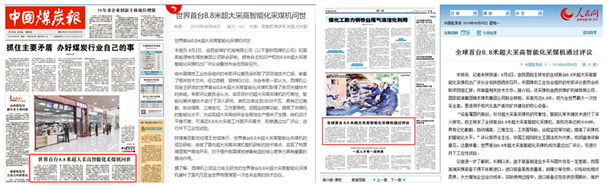 公司自主研發(fā)世界首臺(tái)8.8米智能化采煤機(jī)引中國(guó)新聞等76家媒體關(guān)注