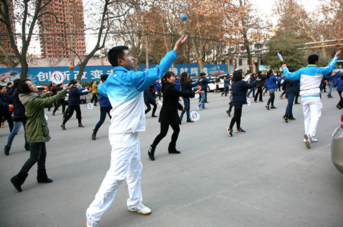 圖為2月11下班后,公司女職工們?cè)趯?zhuān)心學(xué)練柔力球的基本動(dòng)作。運(yùn)動(dòng)中的每一次收力、發(fā)力、接球、拋球、旋轉(zhuǎn)都能使大家享受到酣暢淋漓、無(wú)拘無(wú)束、翩翩起舞、隨心所欲的快樂(lè)感覺(jué)。(王麗萍)