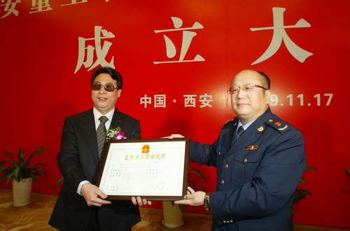 西安市工商行政管理局經(jīng)開(kāi)區(qū)分局局長(zhǎng)趙峰為西安重工裝備制造集團(tuán)有限公司頒發(fā)營(yíng)業(yè)執(zhí)照