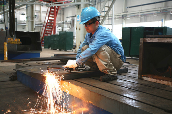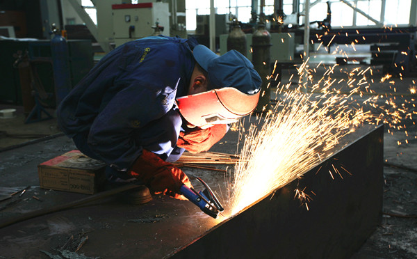 焊縫質(zhì)量的好壞取決于焊接水平的高低,焊接過程中如果使用風(fēng)扇,就會(huì)嚴(yán)重影響焊縫融合。夏日的車間高溫酷暑,有風(fēng)扇不能吹,這是最難忍的。對(duì)于鉚焊工人來說,在加熱的鐵筒內(nèi)干活是最為艱苦的,壓封頭、捲制加熱的鋼板、焊接鐵筒內(nèi)外焊縫和內(nèi)部裝置,平均每天在高溫下工作12個(gè)多小時(shí),要接受炙熱的“烤”驗(yàn)。有工人風(fēng)趣地說,這頗有《西游記》中孫悟空在太上老君煉丹爐里耍功夫的意味。