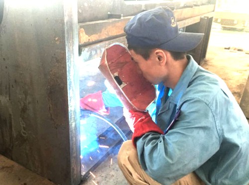今年六月份,分公司受命接到出口越南采煤機(jī)210101E-220101E牽引部(左右各一件)生產(chǎn)焊接任務(wù),由于此次加工的牽引部是分公司鑄改焊之后的首次高端新產(chǎn)品,從工藝要求到產(chǎn)品制作加工,完全是一次全新的嘗試。牽引部所使用的材質(zhì)是460材料,不同以往常規(guī)的230或16Mn材料,材質(zhì)強(qiáng)度高,所要求的焊接水平也非常高,工藝復(fù)雜,質(zhì)量要求嚴(yán)格,再加之牽引部的坡口深,焊接量特別大,時(shí)間緊、工期短、任務(wù)急。對此,分公司領(lǐng)導(dǎo)高度重視,依然將此項(xiàng)任務(wù)交給了楊偉班組。面對新的挑戰(zhàn),楊偉和他班組沒有退縮,而是選擇了迎難而上。他仔細(xì)研究圖紙,及時(shí)與工藝技術(shù)人員溝通,吃透工藝要點(diǎn),熟知質(zhì)量要求,反復(fù)琢磨各部位支撐、連接關(guān)系,包括結(jié)構(gòu)件在翻轉(zhuǎn)過程中避免吊具對箱體表面造成劃痕,他都做了認(rèn)真細(xì)致的研究。在充分吃透各種技術(shù)要求和認(rèn)真研究的基礎(chǔ)上,他結(jié)合自身多年的實(shí)踐經(jīng)驗(yàn),自制工裝,采用最實(shí)用的操作技法,邊集配邊焊接,保證了焊接件加工質(zhì)量和圖紙技術(shù)尺寸要求。時(shí)值六月的西安,接連的持續(xù)高溫,楊偉同志身先士卒,發(fā)揮模范帶頭作用,顧不上擦去臉上一道道的汗痕,帶領(lǐng)班組成員戰(zhàn)高溫、斗酷暑,每天一干就是10多個(gè)小時(shí),身體經(jīng)受著高溫和弧光火焰的雙重“烤驗(yàn)”,衣服常常被汗水浸得濕漉漉的。但對于楊偉和他的班組來說,再熱再苦再累,都不怕,咬咬牙,堅(jiān)持堅(jiān)持就挺過去了,重要的是通過大家的努力,按時(shí)保質(zhì)保量完成加工任務(wù),這才是關(guān)鍵。身為班組長,他身先士卒、勇挑重?fù)?dān),作為一名共產(chǎn)黨員,他時(shí)時(shí)搶在先,干在前,樹立共產(chǎn)黨員先進(jìn)標(biāo)桿形象,對于自己的所作所為,他時(shí)常說“我是一名共產(chǎn)黨員,就必須要帶好頭,樹好先進(jìn)形象?!?span>