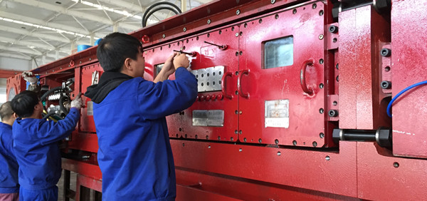 電氣分公司領(lǐng)導(dǎo)對此臺機(jī)組的安裝工作高度重視,提出了嚴(yán)格的安裝要求,針對安裝工期短、安裝任務(wù)重,科學(xué)制定作業(yè)計(jì)劃,合理安排人員加班加點(diǎn),確保機(jī)組按期交貨。在機(jī)組的安裝過程中,分公司本著“讓用戶滿意”的宗旨,做到所有電控部件都要進(jìn)行調(diào)試操作,保證機(jī)組到礦后運(yùn)轉(zhuǎn)正常。他們克服機(jī)組本身體積大,安裝比較困難等諸多不利因素,發(fā)揚(yáng)不怕苦、不怕臟、不怕累的精神,一干就是一個通宵。在安裝調(diào)試階段,由于返修的原因需要不斷地拆蓋板測線路,反復(fù)地拆卸重蓋板,使電工二組員工陳林、馮剛等人胳膊累的都已抬不起來,但是大家都沒有一個人叫苦叫累,咬牙堅(jiān)持,毫無怨言。在客戶交驗(yàn)機(jī)組時,由于此臺機(jī)組的遙控器是公司新設(shè)計(jì)的新型產(chǎn)品,接受裝置出現(xiàn)一些故障,導(dǎo)致信號接收距離太短,無法實(shí)現(xiàn)遠(yuǎn)程操作。面對困難和問題,他們沒有退縮,而是積極配合設(shè)計(jì)部門一起查問題、想辦法、解難題,及時將機(jī)組的遙控接收裝置進(jìn)行更換,最終實(shí)現(xiàn)遙控接收正常,機(jī)組順利通過驗(yàn)收。